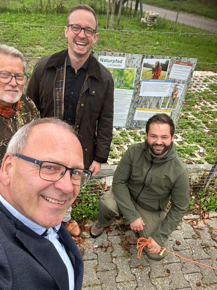 Stolz präsentieren die Jagdpächter Friederich Korff und Tom Bender, der auch der Leiter des Hegerings Bodenheim ist, den neuen Naturlehrpfad in Lörzweiler. In den sehr gut beschriebenen und bebilderten Schautafeln, angebracht an einem umzäunten Gelände am Ende der Königstuhlstraße, findet man in unserer lebendigen Ortsgemeinde ein neues, lohnendes Projekt, das über unsere Wildtier-Fauna informiert.