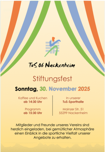 Einladung zum Stiftungsfest TuS 06 Nackenheim